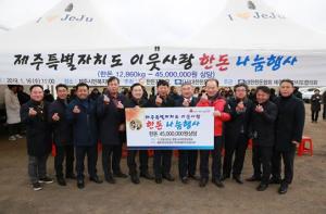 ㈔대한한돈협회 제주협의회, 4500만원 상당 기탁㈔대한한돈협회 제주도협의회(회장 양정윤)가 어려운 이웃을 위해 7년째 한돈 나눔을 이어오고 있다.㈔대한한돈협회 제주도협의회는 최근 제주시 시민복지타운에서 사회복지시설 관계자 등 100여명이 참석한 가운데 '한돈 나눔행사'를 열고 4500만원 상당의 돼지고기 1만2860㎏을 제주사회복지공동모금회(회장 김남식)에 전달했다.기탁된 돼지고기는 도내 사회복지시설 72곳에 전달됐다.양정윤 회장은 "앞으로도 어려운 이웃에 더 많은 관심을 갖고 나눔행사를 꾸준히 개최할 계획"이라고
