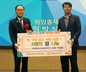 국제로타리 3662지구(총재 박상림)는 최근 제주도사회복지협의회(회장 고승화)가 진행하고 있는 '밥 걱정 없는 제주 만들기-릴레이 쌀 기부 캠페인'에 동참했다.이날 국제로타리 3662지구는 제주도사회복지협의회에 쌀 1000㎏을 기부했다.박상림 총재는 "앞으로도 지역사회에서 솔선수범한 모습을 보이고 가치 있는 나눔활동을 이어나가겠다"고 말했다.한편 '밥 걱정 없는 제주 만들기-릴레이 쌀 기부 캠페인'은 공공기관 및 기업·단체·개인을 대상으로 진행하고 있으며, 기부받은 쌀은 도내 기초푸드뱅크·마켓 이용자에게 전달될 예정이다.