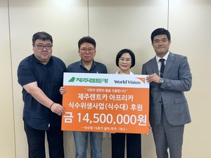 제주렌트카(대표이사 한미경)는 아프리카 가나 지역의 아동을 위한 식수대 설치 기금 1450만원을 월드비전(제주나눔센터장 강동균)에 후원했다. 이번 전달식은 7월 3일 제주렌트카의 46주년 창립기념일을 축하하며 제주렌트카 본사에서 진행되었다. 제주렌트카는 2012년부터 월드비전과 함께 아시아, 아프리카 등 가난과 질병으로 고통받고 있는 전세계 아동을 위해 교육지원사업, 식수위생사업, 해외아동결연후원사업 등 나눔 활동으로 아동의 자립을 돕고 있다. 또한, 돌봄과 지원이 소외된 도내 취약계층과 아동의 건강한 성장을 위한 지역사회복지사업도