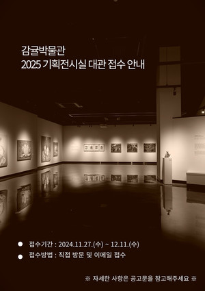 서귀포 감귤박물관은 11월 27일부터 12월 11일까지 2025년 기획전시실 대관 신청을 받는다고 25일 밝혔다.감귤박물관은 '제주특별자치도 감귤박물관 설치 및 운영 조례'에 의해 도민과 문화 수요층에게 문화예술 참여 및 향유 기회를 제공하고자 기획전시실을 대관 운영 중이다. 대관 가능 기간은 2025년 3월 4일부터 11월 9일까지로, 감귤박물관에서 자체 기획한 전시 및 프로그램 일정 외의 기간에 한해 신청할 수 있다.대관을 희망하는 개인 또는 단체는 감귤박물관 누리집에서 신청서를 내려받아 작성한 후, 감귤박물관 사무실에 방문 접