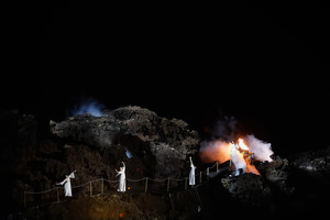 지난 19일 성산일출봉 일대에서 2020년 세계유산축전 공식 기념식 '세계자연유산 기억의 날'이 열렸다. 이날 기념식에는 원희룡 지사를 비롯해 정재숙 문화재청장, 좌남수 도의회 의장과 사전신청한 도민·관광객 80여명이 참여했다.세계유산축전은 유네스코 세계유산으로 등재된 국내 세계유산의 가치와 의미를 전 국민이 향유하기 위해 문화재청에서 올해 처음 추진한 사업으로 지난 4일부터 20일까지 거문오름용암동굴계와 성산일출봉 등지에서 펼쳐졌다. 사진은 공식 기념식 행사 모습과 이어서 진행한 성산일출봉 실경공연 초연 모습. (세계유산축전 사무