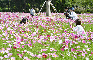 청명한 날씨를 보인 11일 제주시 애월읍 항파두리 인근에 형형색색의 코스모스꽃이 만개해 도민과 관광객들이 사진을 찍으면서 가을 정취를 느끼고 있다. 김용현 기자