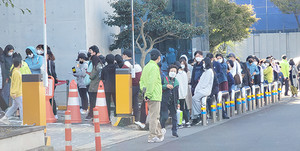코로나19와 독감의 트윈데믹(twindemic)을 막기 위한 제주도의 전 도민 독감백신 무료 접종이 13일부터 시작된 가운데 첫 주말 휴일인 17일 도내 의료기관과 병의원에 인파들이 몰렸다. 이날 제주시 연동 한국건강관리협회 건강검진센터(건강증진의원)에도 수많은 도민들이 몰려 긴 줄을 늘어서며 대기해야 했다. 대부분의 사람들이 마스크를 착용했지만 사회적거리두기가 지켜지지 않았다. 김용현 기자