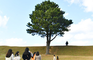 새로운 포토핫 플레이스로 각광을 받는 애월읍 항파두리 소나무존에서는 다소 강한 바람에 쌀쌀한 날씨에도 많은 관광객이 찾아 대기를 하며 사진을 찍고 있다. 김용현 기자