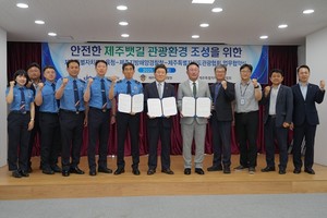 제주도관광협회·제주도교육청·해경 등17일 관광객 유치 확대 업무협약 체결제주도관광협회(회장 강동훈)는 17일 제주종합비즈니스센터 대회의실에서 제주도교육청 및 제주지방해양경찰청과 안전한 제주 뱃길 관광환경 조성을 통한 관광객 유치 확대를 위해 업무협약을 체결했다.이번 협약은 안전한 뱃길 관광환경을 조성하고 홍보함으로써 뱃길이 안전하다는 인식을 확산하는 등 제주 방문 관광객 유치 확대를 위해 추진되는 것이다.주요 내용으로는 △뱃길 활용 교육 여행객 등 관광객 유치 △해양 안전 기반 안전한 뱃길 관광환경 조성 및 인식확산 △해양 안전 문