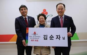 김순자씨, 제주 아너 소사이어티 94호 가입제주시 화북동에 거주하는 김순자씨(73·여)가 개인 고액기부자 모임인 아너 소사이어티 회원에 이름을 올렸다.제주사회복지공동모금회(회장 김남식)는 지난 16일 김씨가 공동모금회 사무실에서 도내 어려운 이웃을 위해 1억원 기부를 약속하며 아너 소사이어티에 가입했다고 18일 밝혔다.김씨는 도내에서 94번째, 전국에서는 1940번째 아너 소사이어티 회원이 됐다.2004년부터 14년 동안 사랑의열매를 통해 꾸준히 기부를 해오고 있는 김씨는 "그동안 아끼고 모은 돈이 어려운 아이들을 위해 쓰였으면
