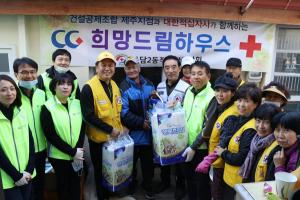 건설공제조합 제주지점(지점장 이일광)은 24일 제주시 용담2동의 한 주택에서 도내 취약계층 주거환경개선을 위한 '희망드림 하우스' 후원금 1000만원을 대한적십자사제주특별자치도지사(회장 오홍식)에 전달하고 봉사활동을 실시했다.이날 조합원 5명과 용담2동적십자봉사회(회장 오태종) 15명은 주거환경 개선을 위해 도배와 장판·방충망·전등 교체 등 주거환경 개선 봉사활동을 실시했다.이일광 지점장은 "어르신이 깨끗한 환경에서 생활하시기를 바라는 마음으로 즐겁게 봉사를 진행했다"며 "앞으로도 소외된 이웃들을 돕기 위한 주거