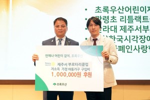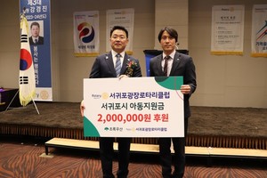 서귀포광장로타리클럽(회장 한종관)은 최근 초록우산 제주지역본부(본부장 변정근)에 서귀포시 아동지원금 200만원을 후원했다.이번 지원금은 서귀포광장로타리클럽 제3·4대 회장 및 임원 이·취임식을 맞아 지역내 소외 아동을 지원하기 위해 마련됐다.한종관 신임 회장은 "무거운 책임감을 갖고 소통과 협력을 통해 클럽을 이끌어 나가겠다"며 "지역내 나눔 문화 확산에 모범이 될 수 있도록 노력하겠다"고 말했다.