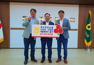 고권진 제주양돈농협 조합장은 최근 제주사회복지공동모금회(회장 강지언)에 재일제주인 돕기 성금 100만원을 기탁했다.기탁 받은 성금은 재일제주인들의 생계비·위문품 등을 지원하는데 사용될 예정이다.고권진 조합장은 "재일제주인 어르신들에게 조금이나마 마음을 전달할 수 있어 감사하다"고 말했다.