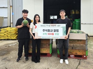 주식회사 파밍(대표 현승민)은 최근 제주도사회복지협의회(회장 고승화)가 운영하는 사랑나눔푸드마켓·뱅크에 수박 100통을 기부했다.기부받은 수박은 사랑나눔푸드마켓·뱅크를 이용하는 취약계층 가구 등에 전달될 예정이다.현승민 대표는 "지역내 어려운 이웃들이 무더운 여름을 이겨낼 힘이 생기길 바란다"며 "앞으로도 나눔활동을 실천해 나가겠다"고 말했다.