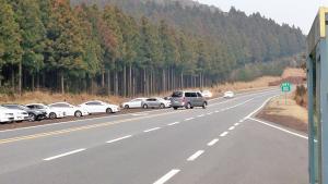 과속·중앙선 침범 빈번무단횡단 등 사고 위험사고예방 시설보강 시급걷기열풍을 타고 수많은 도민과 관광객 등이 찾고 있는 사려니숲길 입구가 과속차량과 시설 미비 등으로 인해 언제 대형사고가 발생할지 모르는 '시한폭탄'으로 전락했다.28일 남조로 사려니숲길 입구.평일임에도 불구하고 사려니숲길과 붉은오름의 정취를 즐기기 위한 탐방객들의 차량으로 도로변이 차량으로 빼곡했다.이날 현장 확인 결과 제주시와 서귀포시 양 방향으로 주행하는 차량들이 과속을 일삼고 탐방객들이 제주시 방면으로 가기 위해 중앙선 침범을 목격하는 모습이 연이