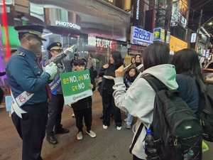제주동부경찰서(서장 오창한)는 지난 13일 대학수학능력시험 종료 후인 오후 6시부터 경찰과 도교육청, 학부모, 학생회 등 30여 명이 참여한 가운데 수험생들의 안전한 귀가와 청소년 선도·보호를 위한 합동 순찰 및 캠페인을 실시했다.이날 순찰은 제주시청 인근 청소년 밀집지역을 중심으로 진행됐고 청소년이 출입하는 유해환경 점검과 귀가지도 활동도 함께 이뤄졌다.
