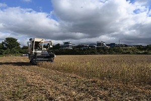 지난주 제주를 덮친 역대급 폭우가 물러가고 맑은 날씨를 보인 5일, 제주시 애월읍 광령리의 한 콩밭에서 수확 작업이 진행되고 있다.