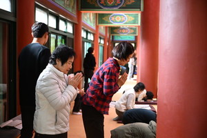 2025 대학수학능력시험을 나흘 앞둔 10일 오전 제주시 천왕사에서 수험생 자녀를 둔 학부모들이 자녀의 성공적인 시험을 위해 기도하고 있다. 김은수 기자