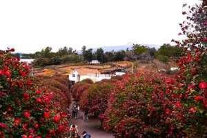 지난 25일 크리스마스를 즐기려는 나들이객들이 서귀포시 남원읍 신례리에 위치한 동백포레스트를 찾아 분홍빛 동백꽃으로 물든 애기동백나무의 장관을 감상하고 있다.
