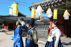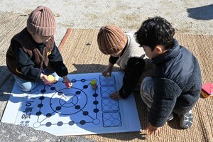 설 다음 날인 30일 제주목 관아에서 민속놀이 마당이 열린 가운데 아이들이 고사리 손으로 윷놀이를 즐기고 있다. 김은수 기자