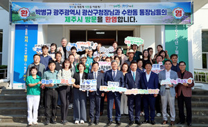 제주시는 지난 27일 시청 본관 회의실에서 광주광역시 광산구(구청장 박병규)와 상생발전 협약을 체결했다.이번 협약은 제주시와 광산구 간 지속적인 교류와 협력을 바탕으로 지역사회 공동발전을 도모하고, 문화·관광 등 다양한 분야에서 협력관계를 강화하기 위해 마련됐다. 협약을 통해 양 기관은 △지역 특산물 및 문화·관광 자원 상호 홍보 △고향사랑기부제 확산 및 건전한 기부문화 조성 △행정·복지·환경 등 주민생활 향상을 위한 정책 공유 등에 협력한다.이날 협약식에는 제주시 연동 통장협의회와 광산구 수완동 통장단이 함께해 고향사랑기부금 상호