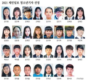 제민일보가 2021년 청소년기자단을 구성했습니다. 청소년기자들은 교육현장과 관련한 다양한 생각을 지면을 통해 전달하게 됩니다.다음은 청소년기자 명단(가나다순).강다원(제주서초 5), 강단예(서귀중앙여중 3), 강재연(제주중 1), 고예빈(신성여중 1), 김리하(탐라중 2), 김민기(아라초 6), 김예원(신성여중 1), 김예진(서귀중앙여중 3), 김윤경(제주동여중 1), 김윤영(제주여고 1), 김재연(도평초 6), 김주연(제주대사범대부설고 1), 김지후(아라초 6), 문지혁(아라중 1), 문지홍(아라초 6), 박준혁(KISJ 8),