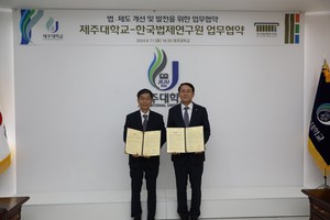 한국법제연구원(원장 한영수)과 제주대학교(총장 김일환)는 11일 제주대 본관에서 자치분권법제 발전을 위한 연구 교류를 위한 업무협약을 체결했다.이번 협약을 통해 양 기관은 △자치분권법제 연구 등 법학 분야 연구센터 공동 운영 △법제·입법정책 등 법학 분야 학술정보 등의 교류 협력 △법제·입법정책 관련 과목 개설 및 강의 등에 협력하기로 했다.한영수 한국법제연구원장은 "앞으로 제주대학교와 협력해 자치분권과 균형발전에 관한 연구와 활동을 적극적으로 수행할 수 있도록 노력하겠다"고 밝혔다. 김은수 기자