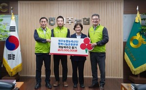 제주농협농축산인행복나눔운동본부(본부장 윤재춘)는 최근 제주사회복지공동모금회(회장 강지언)에 성금 2000만원을 기탁했다.이번 성금은 생계가 어려운 재일제주인들을 돕기 위해 마련된 것으로, 재일제주인의 생계비와 위문품 등을 지원하는데 사용된다.윤재춘 본부장은 "타국에서 힘든 시간을 보내고 있는 재일제주인 어르신들에게 반가운 고향의 정이 전해졌으면 좋겠다"고 말했다.한편 제주농협농축산인행복나눔운동본부는 특별모금이 시작된 지난 2011년부터 매년 성금을 지원해 오고 있다.