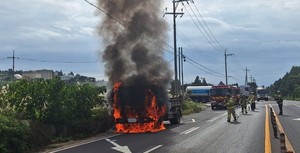 서귀포시 한 도로에 주차된 대형 트럭에서 화재가 발생했다.26일 제주소방안전본부에 따르면 이날 오전 10시 45분쯤 서귀포시 안덕면 동광리 소재 도로에 주차된 4.5t 덤프트럭에 화재가 발생했다는 신고가 접수됐다.현장에 출동한 119에 의해 20여분만에 진화됐다. 다행히 화재로 인한 인명피해는 없는 것으로 알려졌다. 경찰과 소방당국은 정확한 화재 원인을 조사 중이다.