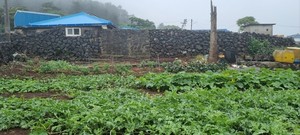 녹남봉을 끼고 도는 안개는 금방이라도 마을을 덮칠 것 같다. 잘린 종려나무인 것 같은 형상이 파란 지붕 너머를 감시하고 있다. 텃밭이라고 하기엔 조금 큰 듯한 누군가의 돌랭이밭이다. 그 안에는 수박, 호박, 가지, 고추가 자라고 있다. 나비 두 마리가 우주 전체를 비행하는 듯 숨가쁘게 움직이고 있다. 라디오에서 나비와 나방의 차이를 설명하는 걸 들으며 온 터라 나비의 움직임을 한참이나 관찰해본다. "내려앉을 때는 날개를 접고, 날아오를 때는 날개를 편다"는 너무나도 상식적인 설명이 처음 듣는 말처럼 신기했다. 흰 나비 두 마리는 서