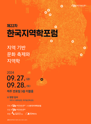 27~28일 22차 한국지역학 포럼 제주연구원 제주학연구센터와 (사)한국지역학포럼은 오는 27일~28일 '제22차 한국지역학포럼'을 개최한다고 11일 밝혔다. 포럼은 27일 제주 썬호텔 더볼룸에서 '지역 기반 문화 축제와 지역학'을 주제로 열리는 학술대회와, 28일 제주4·3평화공원과 제주돌문화공원 현장 답사 형식으로 이뤄진다. 포럼에는 한국지역학포럼 회원들과 제주 지역학 전문가들이 참석하며, 지역 축제를 문화 자원으로서 가치를 창출할 수 있는 방안에 대해 모색할 예정이다. 27일 학술대회에서는 허남춘 제주대학교 명예교수가 '제주