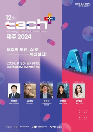 제12회 테크플러스 제주 2024 30일 한라컨벤션센터서 개최 김대식, 손병희, 김선식 참여 인공지능(AI)으로 비롯된 시대의 변화를 통찰한다. 제주특별자치도가 주최하고 제주테크노파크와 제주의소리가 주관하는 '제12회 테크플러스 제주2024'가 오는 30일 한라컨벤션센터에서 개최된다. 행사에는 오영훈 제주특별자치도지사와 국내 대표적인 AI 전문가, 기업인과 도민 등이 참여한다. 행사는 '도전, AI로 혁신하다!'를 주제로 Chat GPT 등장과 함께 가속화되고 있는 AI 시대의 변화를 통찰하고, AI와 인간의 공존, 나아가 AI를