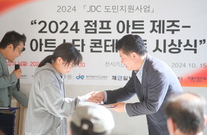 지난 7일, JDC가 주최하고 (사)아시아예술경영협회가 주관한 ‘2024 점프아트 제주-영 아티스트 콘테스트’가 제주현대미술관 무대에서 열린가운데, 11일 수상작이 발표됐다. 최우수상인 ‘JDC 이사장상’에는 이채원 학생(한라중 3)의 작품이 선정됐다. 이어 ‘김흥수 하모니즘상’에 이율호 학생(노형초 1), ‘제주특별자치도 교육감상’에 조보빈 학생(한림초 4), ‘펑정지에 작가 미술상’에는 지서윤 학생(중국북경55중국제학교 2)이 수상의 영애를 안았다. 장려상에는 44명의 작품이 선정됐다. ‘지도자상’에는 정준욱(카사아트)씨가 이름