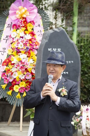 고성기 시인, 지난 9일 한림항서 시비 제막식 도내 시조 문화 발전을 위해 힘 쏟고 있는 고성기 시인의 시비가 한림항에 세워졌다. 지난 9일 오전 11시 고성기 시인의 '내 사랑 한림항' 시비 제막식이한림읍 한림항에서 열렸다. 이번 제막식은 한수풀문학회가 주관하고 한림읍, 제주문인협회, 제주시조시인협회의 후원으로 이뤄졌다. 제막식에는 김동옥 한림읍장, 양전형 제주문인협회 회장, 오승국 제주작가회의 회장, 김정숙 제주시조시인협회 회장, 박원철 전 제주특별자치도의원 등 도내 문학인과 관계자들이 참석했다. 이날 시인은 작품 「내 사랑 한
