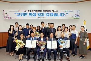제주시는 12일 시청 본관 회의실에서 6·25전쟁 참전 유공자인 고 우동혁 소위, 고 박인염 병장, 고 문경호 병장 유족에게 화랑무공훈장을 전수했다.전쟁 당시 고 우동혁 소위는 수도사단 기갑연대, 고 박인염 병장은 11사단 중포중대, 고 문경호 병장은 26사단 76연대에 소속했다.이들은 대한민국의 영토와 자유 민주주의를 수호하기 위해 헌신했다. 이에 대한 공로를 인정받아 무공훈장 대상자로 선정됐다.제주시 관계자는 "늦었지만 무공훈장을 유가족에게 전달할 수 있어 기쁘고 영광스럽다"며 "고귀한 희생에 존경과 감사의 마음을 전하고 앞으로
