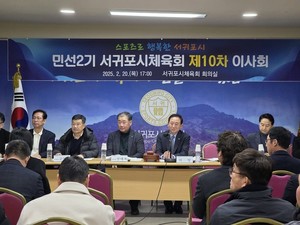 서귀포시체육회(회장 김태문)는 지난 20일 서귀포시체육회 회의실에서 임원 48명이 참석한 가운데 제10차 이사회를 개최했다.이날 이사회에서는 라오스 스포츠교류안, 포괄보조금 지원계획안, 사무국 직원 인사 발령, 감사결과 6건을 보고하고 2024년도 사업결과 및 세입·세출결산안, 임원 선임안 등 4건을 심의·의결했다.김태문 회장은 "2025년에는 임원들과 읍면동 체육회, 종목단체가 화합해 시민에게 사랑받는 체육회가 될 수 있도록 최선의 노력을 다해 나아가겠다"고 말했다. 김수환 기자