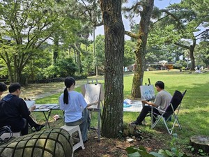 7일 제주현대미술관 야외서 ‘영 아티스트 콘테스트’ 개최 160여명 참가…반응 뜨거워 세계적 거장 심사 참여 주목 무더운 여름, 저지문화예술인마을 제주현대미술관 인근은 붓과 이젤 등 각종 미술도구를 두른 청소년들로 북적였다. 나무로 우거진 그늘 아래 돗자리를 펼치고 팔렛트를 정리하는 학생. 텐트를 치고 노래를 들으며 채색을 하는 학생 등 저지문화예술인마을이 다채로운 빛깔로 반짝였다. 지난 7일, JDC가 주최하고 (사)아시아예술경영협회가 주관하는 ‘2024 점프아트 제주-영 아티스트 콘테스트’가 제주현대미술관 야외무대에서 열렸다.