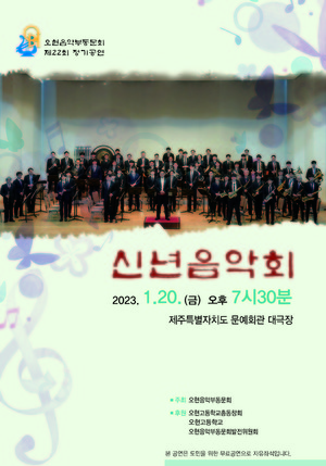 오현음악부동문회(회장 김승훈)는 오는 20일 오후 7시30분 코로나19로 3년 만에 '제22회 신년음악회'로 제주문예회관 대극장 무대에 오른다.1952년 오현고등학교 관악대가 창단하면서 그 졸업생 출신으로 구성된 동문회는 1984년 제1회 동문음악회를 시작으로 현재까지 이어오고 있다.이번 공연은 관악대로만 구성한 연주에서 벗어나 관악단과 성악가 및 합창단의 협연으로 눈길을 끈다. 오현동문윈드오케스트라(지휘 여대현, 김태관)가 무대를 주도하며 소프라노 강정아, 신성동문합창단, 오현OB합창단 등이 찬조출연한다.공연의 악장을 맡으면서 6