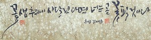 ㈔한국캘리그라피창작협회 제주지회(지회장 박민자)는 세 번째 단체전 '그러하듯이'를 지난 28일부터 오는 2월 2일까지 제주문예회관 1전시실에서 열고 있다.이번 전시는 '긍정'을 주제로 한 글귀를 캘리로 써내려간 작품들을 선보인다.강성도, 고영란, 김영관, 김예춘, 김정석, 김효은, 김인순, 김연숙, 박민자, 박명희, 백경애, 오승희, 현경자 등 모두 13명의 회원이 작품을 출품했다. 회원 모두가 함께한 합동작품도 선보인다.박혁남 작가(한국캘리그라피창작협회 이사장)의 찬조 작품도 내보인다.박민자 회장은 "제주에서 활동하는 작가들의 캘