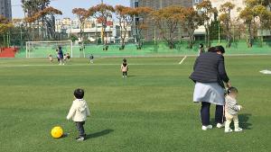 코로나19로 인해 야외활동이 줄어든 가운데 9일 제주시내 한 중학교 운동장을 찾은 어린이집 원아들이 모처럼 밖으로 나와 즐거운 시간을 보내고 있다. 김대생 기자