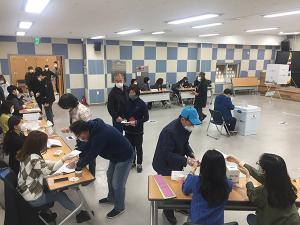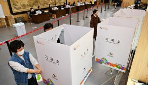 4·15 제21대 국회의원선거 투표가 15일 오전 6시부터 오후6시까지 진행된 가운데 이 코로나19 안전을 준수하면서 소중한 한표를 행사하고 있다. 김용현 기자