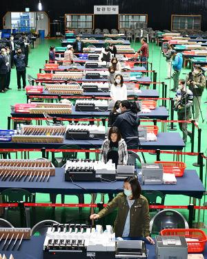 오는 15일 전국적으로 실시될 제21대 국회의원선거를 열흘 앞둔 6일 제주시 한 인쇄소에서 서귀포시선거구 투표용지를 인쇄하고 있다. 김대생 기자