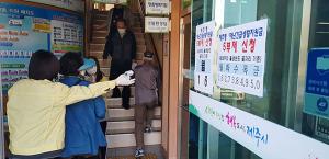 제주형 긴급재난생활지원금 읍면동사무소 현장신청이 27일부터 시작된 가운데 연동주민센터에서는 시행 첫날부터 많은 도민들이 몰려 신청에 나서고 있다. 김용현 기자