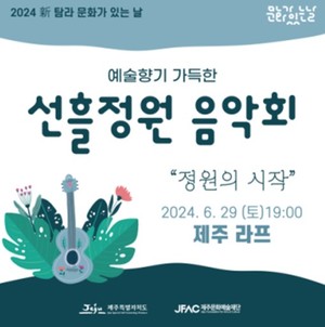 아름다운 자연을 간직한 조천읍 선흘마을에서 이달 낭만적인 재즈 무대가 펼쳐진다.㈜설문대가 주최하고 제주도와 제주문화예술재단이 후원하는 기획 공연 '선흘정원 음악회'가 오는 29일 오후 7시 제주시 조천읍에 위치한 라프에서 열린다.'정원의 시작'을 주제로 열리는 이번 음악회는 세계적인 색소포니스트 '대니 정'과 대한민국 1호 여성 팝페라 가수인 '젬마 킴'이 무대에 오른다.오는 11월까지 이어지는 이번 음악회는 매월 문화가 있는 날 주간에 개최된다.'선흘정원 음악회'는 재즈, 클래식, 마술쇼 등 다양한 장르의 공연뿐만 아니라 선흘리