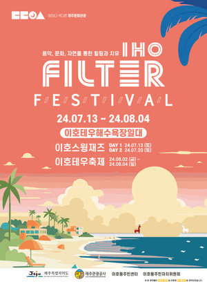문화와 친환경이 결합된 관광콘텐츠인 '2024 이호 필터페스티벌'이 오는 13일과 20일에 이호테우해수욕장 일대에서 열린다.30일 제주도와 제주관광공사는 등에 따르면 '2024 이호 필터페스티벌'은 이호테우해수욕장이 물을 정화하는 필터처럼 방문객들에게 일상의 치유를 선사한다는 의미를 담아 개최된다.이번 페스티벌의 하이라이트는 초여름 밤 이호테우해수욕장의 정취와 어우러지는 재즈공연이다.오는 13일과 20일 토요일 저녁에는 '세이지 민 스윙텟(Sage Min Swingtet)' 등 국내외 재즈 뮤지션이 이호테우해수욕장 상설무대에 올라