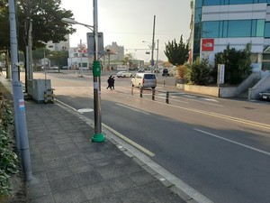 서귀포시내 진입로 중 선경오피스텔 앞 와이(y)자 도로는 항상 붐비는 곳 중이 한 곳으로, 이 곳에서는 가끔씩 교통사고가 발생하고 있다. 진행방향표시가 불합리하기 때문이다. 이곳은 왕복 4차선 도로인데 동쪽에서 진입하는 차량들이 서귀중학교 방면과 동문로타리방면으로 나누어지는 곳이다. 지난 8일 오후 3시25분부터 3시40분까지 15분 동안 교통량을 조사해보니, 서귀중학교 방면으로 진행하는 차량은 68대이나 동문로타리쪽으로 진행하는 차량은 122대로서, 중학교 방면보다 거의 2배가 많은 교통량을 보였다.그런데도 진행방향 표시는 서귀중
