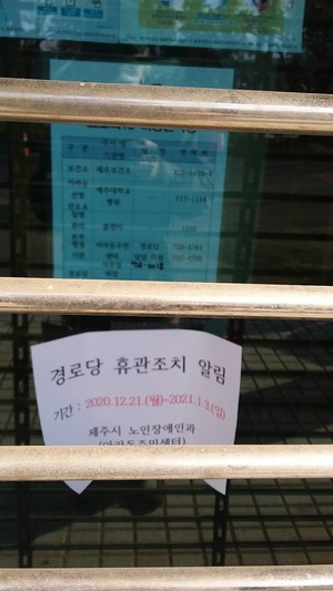 마스크 착용·손 씻기, 최선의 백신 제주시 노인 장애인과에 따르면 제주시에는 65세 노인 인구가 시 인구의 13%인 6만5600여명에 이르고 몇몇의 읍·면·동은 이미 초고령 사회에 진입했으며 이 또한 증가 추세에 있다고 한다. 제주시내에는 각 동 마을별로 294곳의 경로당이 각 마을 노인회장 중심으로 운영되고 있으며 경로당은 항시 개방돼 언제나 노인들이 모여 함께 정담을 나누고 서로간 건강정보나 취미 문화 활동도 공유하며 백세시대를 지향하는 어르신들 만의 행복한 공간이라고 한다.마을 경로당은 규모나 크기에 따라 회원수도 많고 적음이