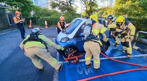 제주의 한 아파트 지하주차장에 주차된 전기차에서 연기가 나 소방이 즉각 조치에 나섰다.10일 제주도소방안전본부에 따르면 지난 9일 오전 10시께 제주시 연동의 한 아파트 지하주차장에 주차된 전기차에서 연기가 나고 있다는 신고가 접수됐다.출동한 소방 당국은 해당 전기차에서 화염 없이 연기만 나는 상태인 점을 고려해 인근에 주차된 차량을 지상으로 이동시키는 조치를 취했다.소방 당국은 정확한 사고 원인을 조사하고 있다.전예린 기자