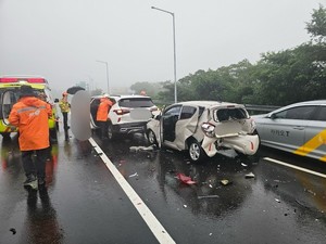 제주의 한 교차로에서 차량 4대가 잇따라 부딪쳐 3명이 다쳤다.22일 제주소방안전본부에 따르면 이날 오후 4시57분께 제주시 조천읍 와흘교차로 인근 도로에서 택시 등 차량 4대가 추돌하는 사고가 발생했다.이 사고로 택시에 타고 있던 중국인 관광객 30대 여성과 5살 남자아이, 승용차 운전자 30대 여성 등 3명이 다쳐 병원으로 이송됐다.경찰은 정확한 사고 경위를 조사 중이다. 고기욱 기자