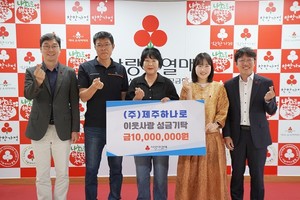(주)제주하나로, 1000만원 공동모금회 기탁제주의료원 통해 전달…"사회적 책임 최선"(주)제주하나로(대표 양성우)는 5일 간병비 지원금 1000만원을 제주사회복지공동모금회(회장 강지언)에 기탁했다.이번 성금은 도내 간병비 지원이 필요한 이웃을 돕기 위해 마련된 것으로 제주의료원을 통해 소외계층에게 전달될 예정이다.양성우 (주)제주하나로 대표는 "어려운 환경 속에서도 투병하는 분들과 가족들이 간병비 부담으로 이중고를 겪지 않도록 작은 힘이나마 보태기 위해 지원금을 마련했다"며 "앞으로도 기업의 사회적 책임을 다하고 소외 이웃에게 실