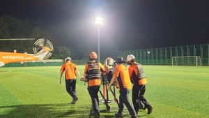 축구를 하다 심정지가 온 20대가 병원에 이송되는 사고가 발생했다.7일 제주소방안전본부에 따르면 전날 오후 8시28분께 제주시 구좌읍의 한 축구장에서 20대 남성 A씨가 의식을 잃고 쓰러졌다는 신고가 접수됐다.A씨는 의식과 호흡이 없는 심정지 상태였던 것으로 전해졌다.당시 경기장에 있던 구좌의용소방대원이 신속하게 심폐소생술(CPR)을 벌였다.현장에 도착한 구급대가 자동심장충격기를 통해 처치했다. A씨는 자발호흡 상태를 보였다.A씨는 제주시 내 병원으로 이송돼 치료를 받았으며 현재 상태가 호전된 것으로 알려졌다.전예린 기자