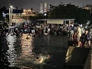 "어른도 아이도 모두 무더위를 식힐 수 있어 좋습니다"제주도 해안 지역을 중심으로 열대야가 기승을 부리는 가운데 도내 곳곳에 있는 용천수가 시민들의 무더위 쉼터 역할을 톡톡히 하고 있다.연중 가장 더운 날로 여겨져 '말복'이라 불리는 9일 오후 제주시 삼양동 샛도리물에는 물놀이를 나온 시민들로 북새통을 이뤘다. 이곳은 땅에서 솟는 용천수와 바닷물이 만나는 곳으로 여름철 피서지로 알려지면서 주민뿐만 아니라 관광객들도 많이 찾는 명소가 됐다.이날 오후 7시30분께 샛도리물은 수영복과 반팔, 반바지 차림의 시민들로 가득했다.주민 A씨(3