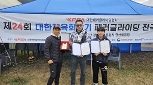 제주도 패러글라이딩 선수단이 23회 대한체육회장기 생활체육 패러글라이딩 전국대회에서 3개 부문을 석권했다.18일 제주특별자치도패러글라이딩협회(회장 박광남)에 따르면 제주 선수단은 지난 17일 경상북도 문경시 문경활공랜드에서 열린 이 대회 조종사부와 단체부, 학생부에서 우승했다.대회는 고도 866m 단산에 위치한 이륙장에서 떠올라 2㎞ 거리에 떨어진 착륙장 과녁(㎝ 기준)에 착지하는 정밀착륙대회다.조종사부에 참가한 고정도(하늘여행)는 목표지점 정중앙에 불과 5㎝ 떨어진 지점을 찍으며 1위를 차지했다.고정도와 부자(父子)지간으로 제주