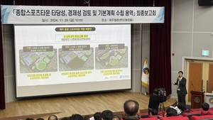 제주특별자치도는 오는 29일 오전 10시 제주웰컴센터에서 '종합스포츠타운 타당성·경제성 검토 및 기본계획 수립 용역' 최종보고회를 개최한다.이번 용역은 제주도가 제주종합운동장 일대를 조성한지 약 60년 만에 전반적인 시설과 공간을 새롭게 구축하는 사업에 앞서 사업 방향성 등을 제시하기 위해 추진되고 있다.용역비는 1억8500만원으로, 조선대학교 산학협력단과 해오름건축사사무소가 용역을 수행하고 있다.제주도는 제주국제공항에 가깝고 구제주와 신제주를 연결하는 지점에 위치한 점을 고려해 스포츠시설과 문화·관광을 아우르는 복합단지 조성을 검